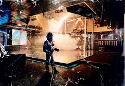 Per cui Nuova Consolle “ LEM” simile a quello che sbarco’ sulla Luna + TECHE con ROBOT nuove luci in pista e nuova MEGA Amplificazione 4 vie con 1000 Watt per canale sempre JBL – fumo e luci strobo alla grande. In piu’ Sigla ad Effetto “ missaggio tra Pink Floyd , Alan Parson Project, Kraftwerk e registrazione del reale dell’Atterraggio sulla Luna, e il Mitico Robot “ Canibel / Muscolo” che usciva da una teca e si muoveva come un vero Robot in mezzo alla gente tra fumo , luci stroboscopiche e musica ad alto volume